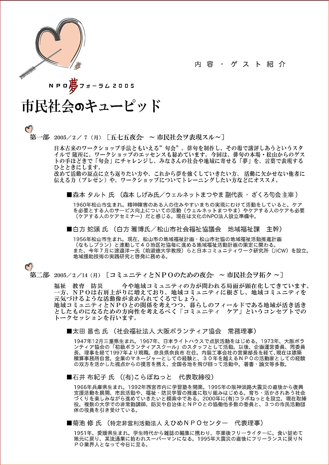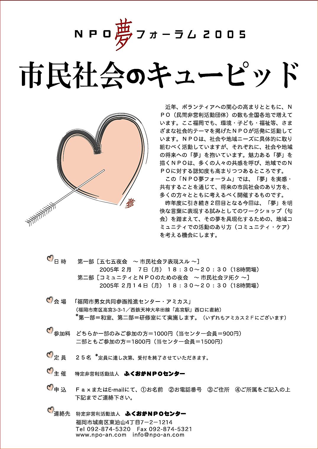 `05.2/7&2/14 「NPO夢フォーラム2005〜市民社会のキューピッド〜」